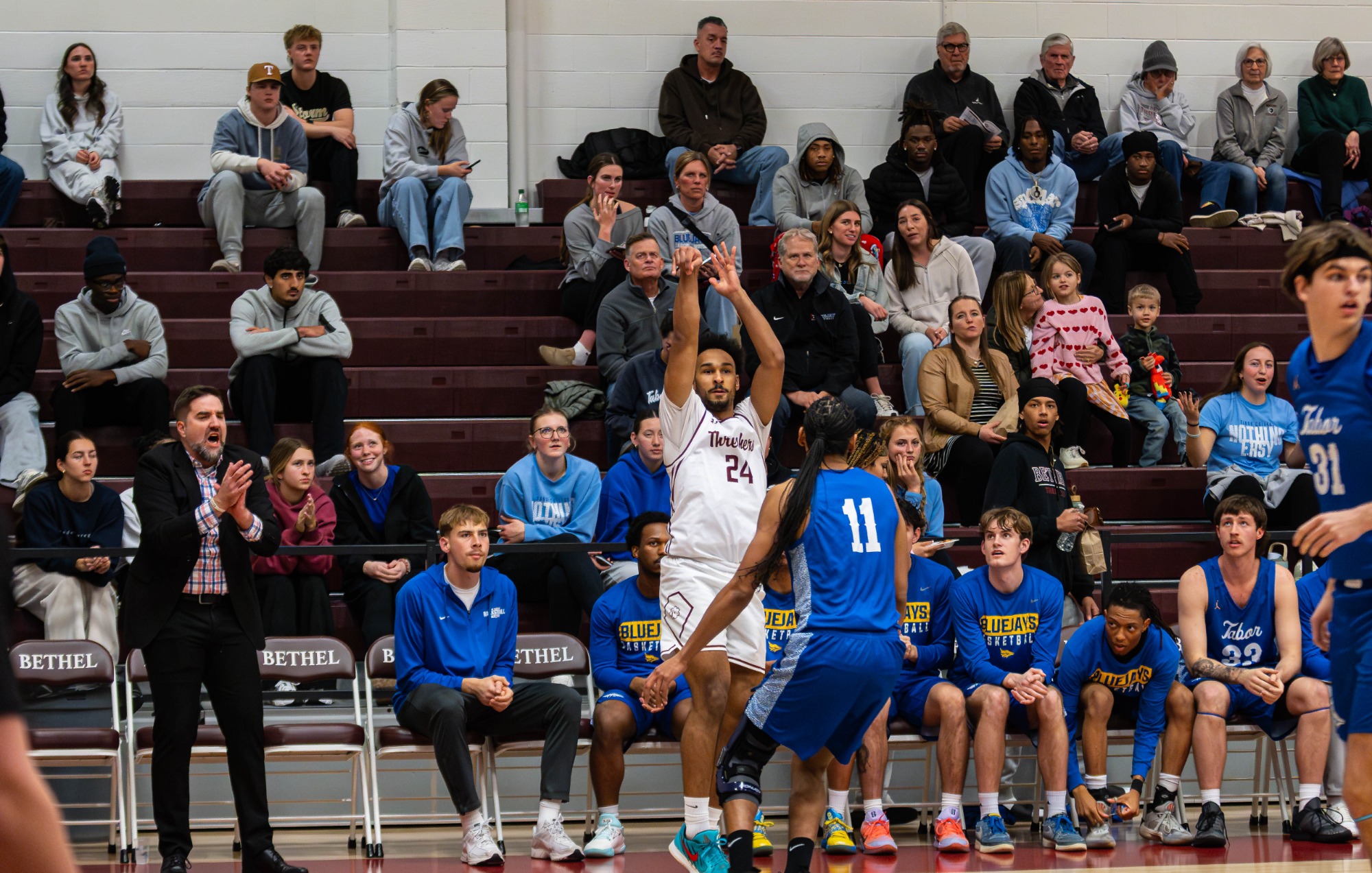 Bethel led 31–26 at halftime before erupting for 56 points in the second half, shooting 54.8 percent after the break. The Threshers controlled the paint all night, finishing with 54 points inside and forcing 34 Ottawa turnovers that led to 31 points.